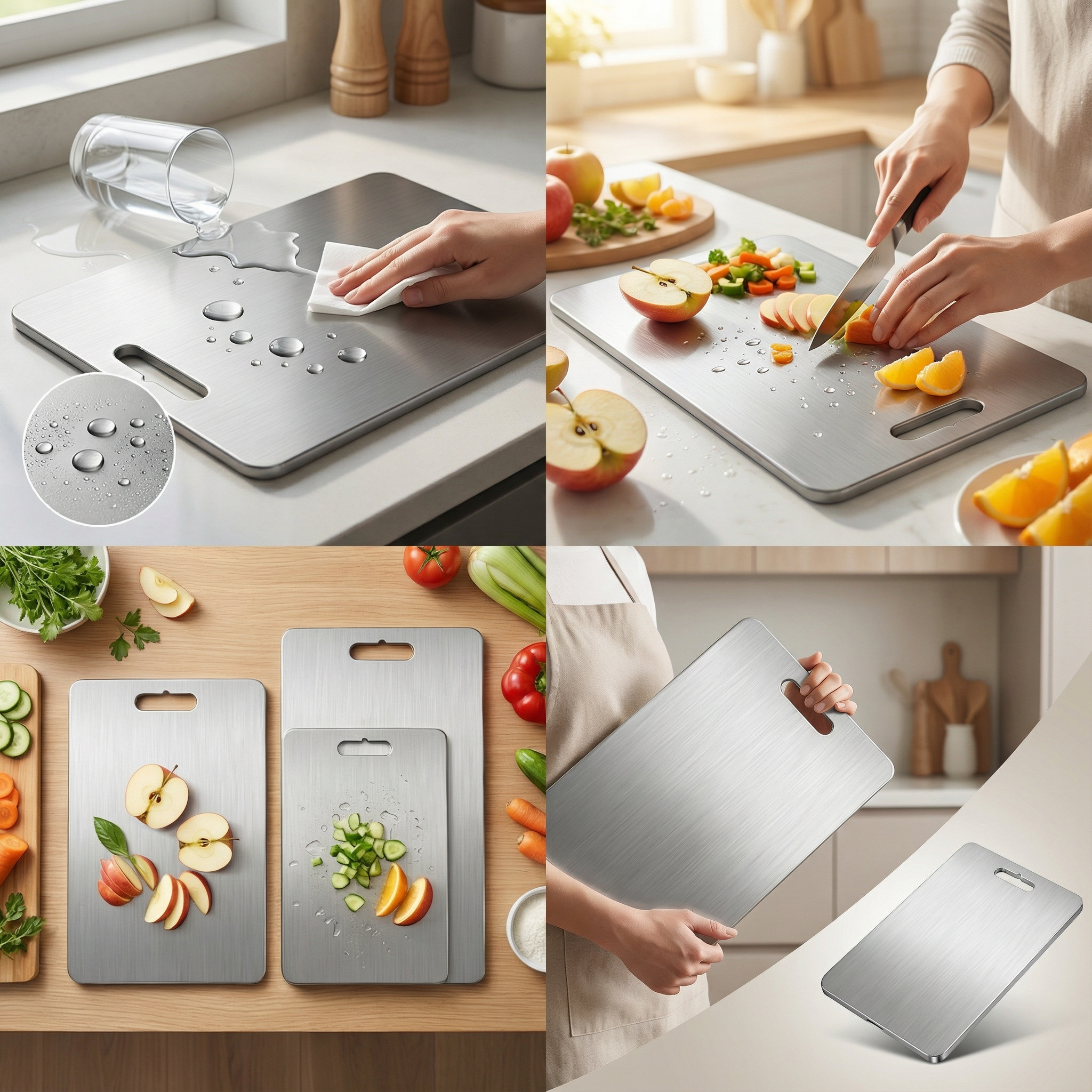 Die antibakterielle Oberfläche von WeEarth Küchenschneidebrett sorgt für eine sauberere und sicherere Küche, indem sie die Vermehrung von Bakterien verhindert. Hergestellt aus ungiftigem Titan, ist WeEarth Küchenschneidebrett frei von schädlichen Chemikalien und gewährleistet eine sicherere Zubereitung von Mahlzeiten für Sie und Ihre Familie.