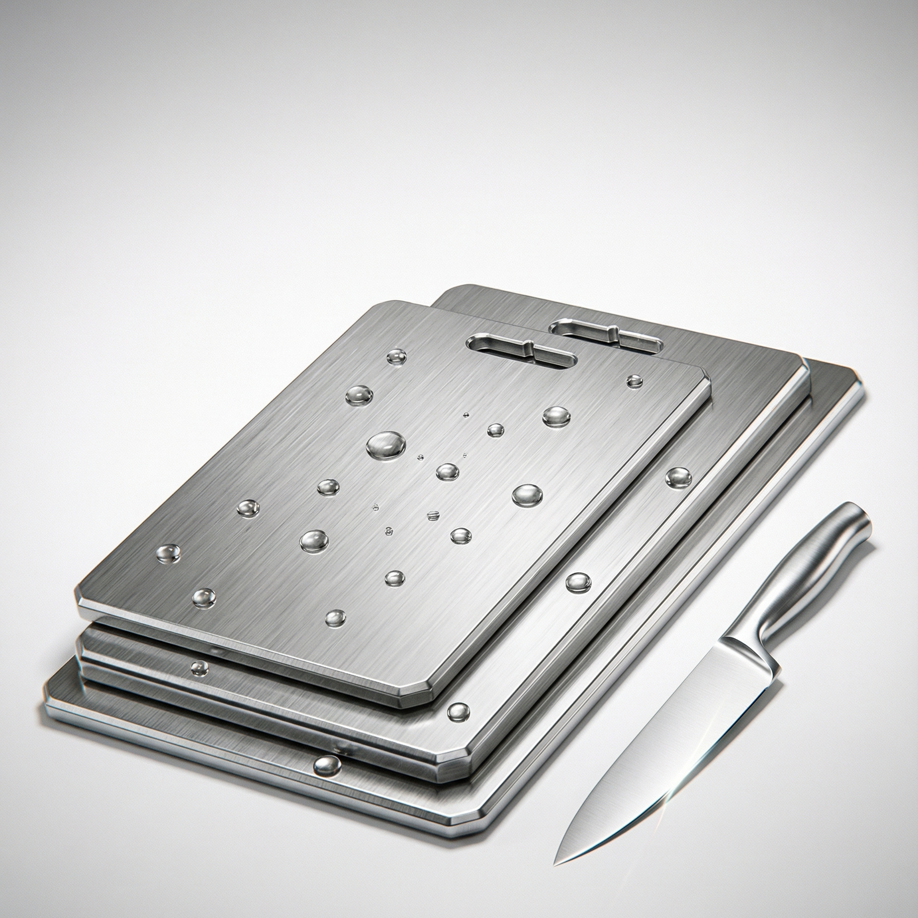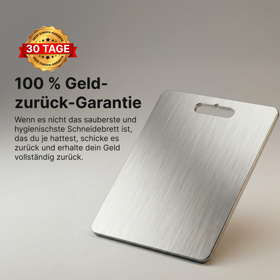 Hygienisches, langlebiges und perfekt verarbeitetes Schneidebrett aus Titan.